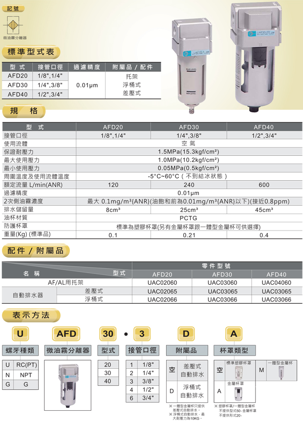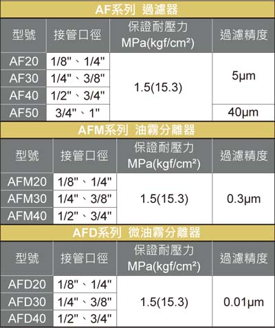 Type : AF20~AF50/ AFM20~AFM40/ AFD20~AFD40