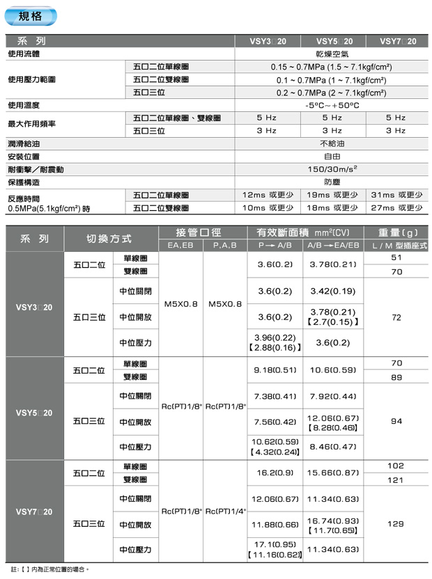Type : VSY3□20 / VSY5□20 / VSY7□20