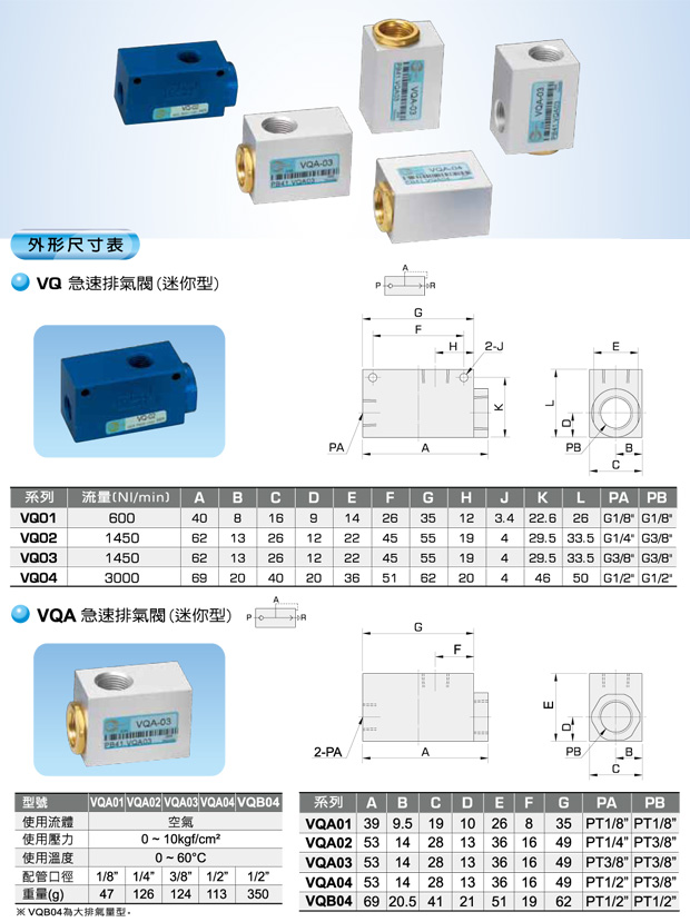 VQ / VQA 急速排气阀