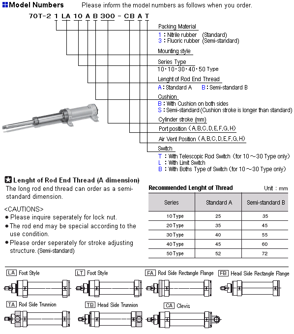 Mounting Style LA,LT,FA,FB,CA,TA,TB