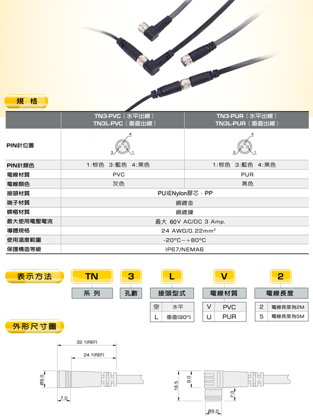 Type : TN3-PVC / TN3L-PVC / TN3-PUR / TN3L-PUR